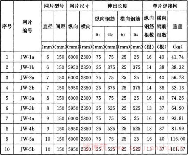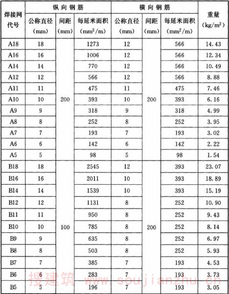 注:1 表中焊接网的重量(kg/m 2 ),是根据纵、横向钢筋按表中的间距均匀布置时,计算的理论重量,未考虑焊接网端部钢筋伸出长度的影响;