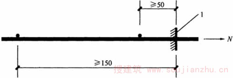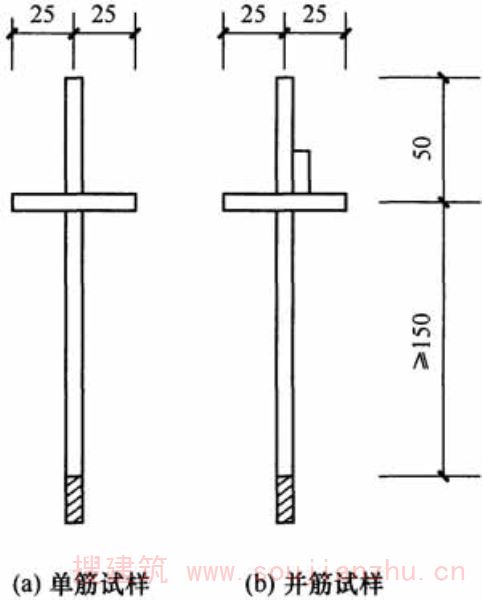 E.0.5 每批焊接网中应随机抽取一张焊接网,在同一根非受拉钢筋上随机截取3个抗剪试样(图E.0.5)。当并筋时,不受拉的一根钢筋应在交叉焊点处截断,但不应损伤受拉钢筋焊点。