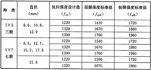 表E.0.2-1 钢绞线抗拉强度设计值、标准值(N/mm 2 )
