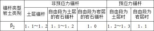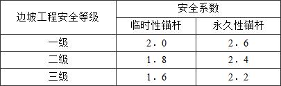 2.将锚杆有关计算(锚杆截面、锚固体与地层的锚固长度和杆体与锚固体的锚固长度计算)由原规范的概率极限状态计算方法转换成安全系数法;