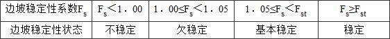 3.调整边坡稳定性分析评价方法:圆弧形滑动面稳定性计算时推荐采用毕肖普法,折线形滑动面稳定性计算时推荐采用传递系数隐式解法;