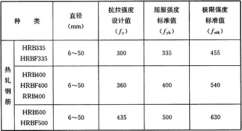 表E.0.2-4 普通螺纹钢筋抗拉强度设计值、标准值(N/mm 2 )