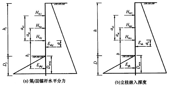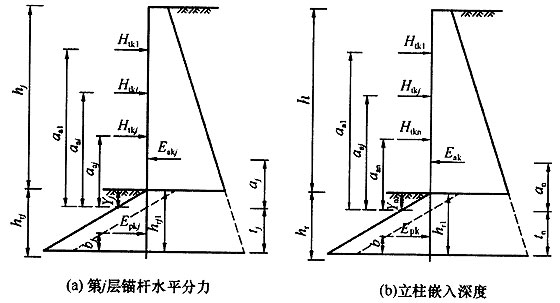 5 立柱的内力可根据锚固力和作用于支护结构上的侧压力按常规方法计算。