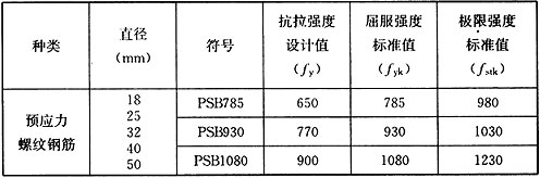表E.0.2-2 预应力螺纹钢筋抗拉强度设计值、标准值(N/mm 2 )