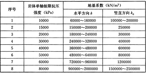 表G.0.1-1 较完整岩层的地基系数