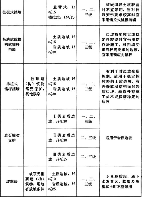 1.0.2 本规范适用于建(构)筑物或市政工程开挖和填方形成的人工边坡,工程滑坡,岩石基坑边坡,以及破坏后危及建(构)筑物安全的自然斜坡的支护设计。 软土边坡有关抗隆起、抗渗流、边坡稳定、锚固技术、地下水处理、结构选型等较特殊的问题以及其他特殊岩土的边坡,应按现行相关专业规范执行。对于开矿、采石等形成的边坡,不适用于本规范,应按相关专业规范执行。