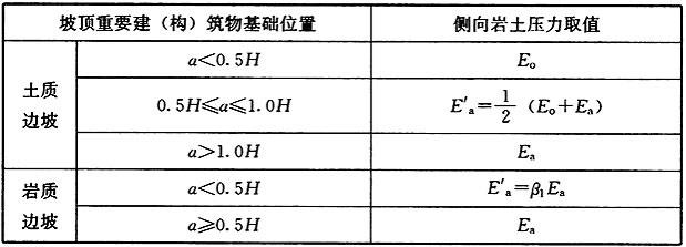 1.明确临时性边坡(包括岩质基坑边坡)的有关参数,(如破裂角、等效内摩擦角等)取值,给出临时性边坡的侧向压力计算;