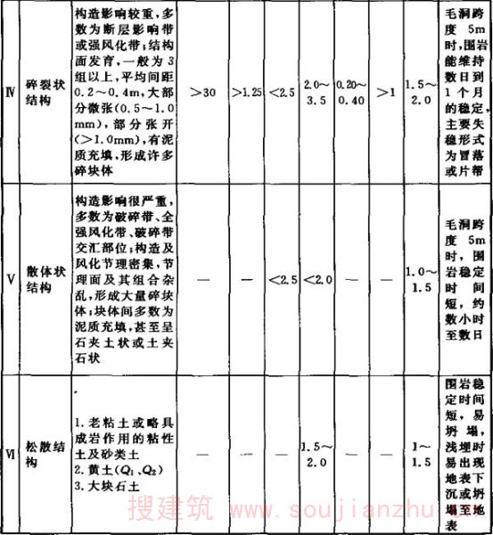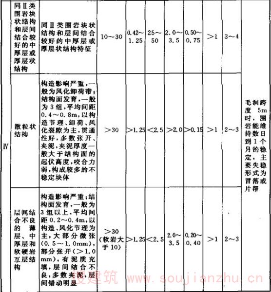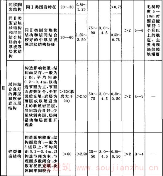 注:1 围岩定性分类与定量指标分类有判别时,一般应以低者为准。