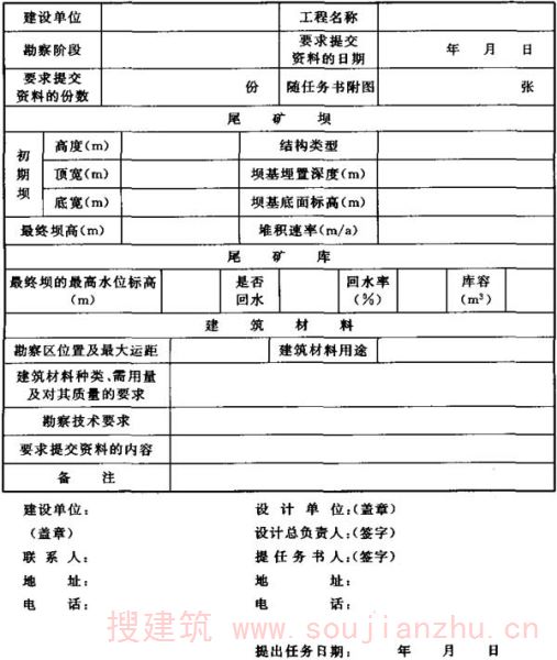 附录B 尾矿及其他工业废渣堆场岩土工程勘察任务书