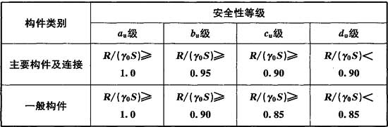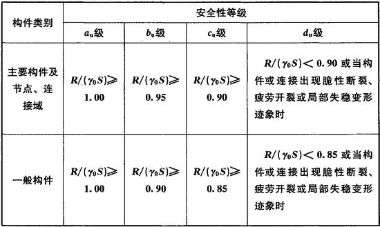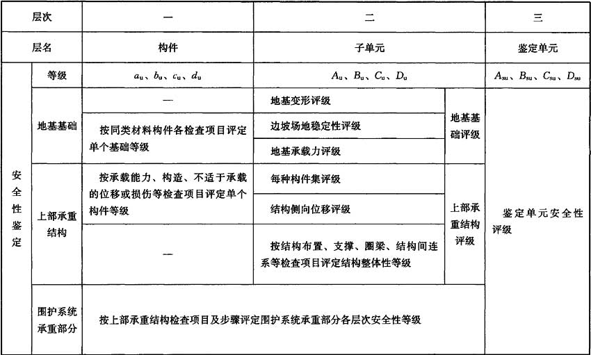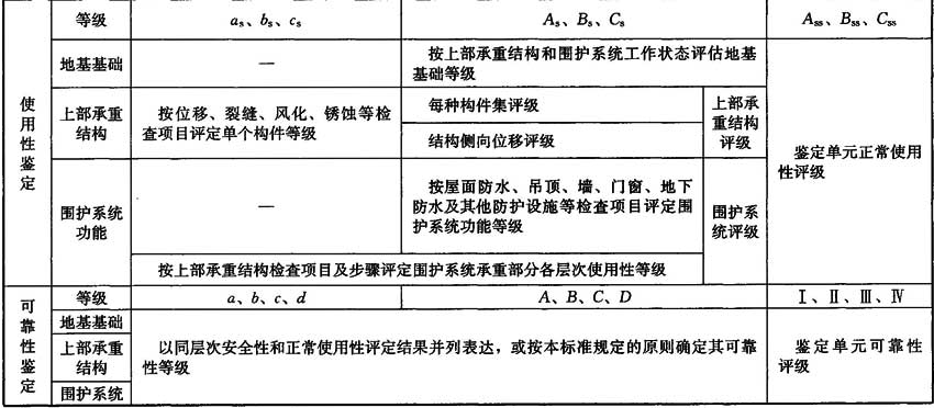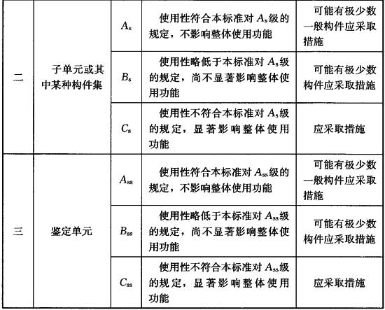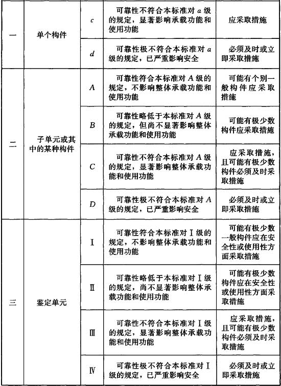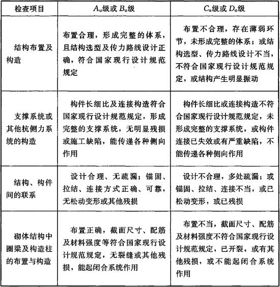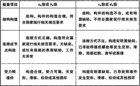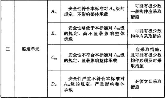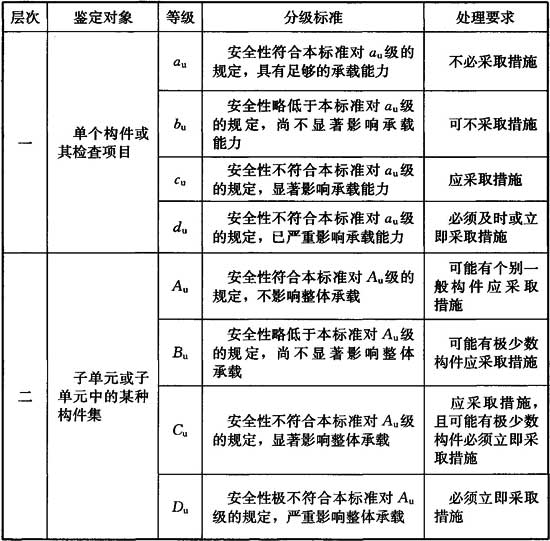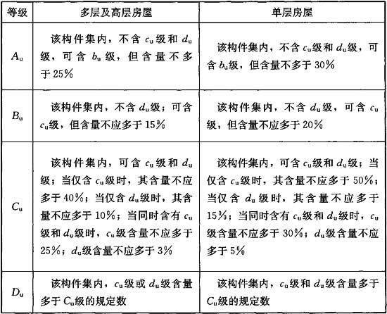 注:评定结果取A u 级或B u 级,根据结构、构件实际完好程度确定;取C u 级或D u 级,根据其实际严重程度确定。