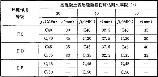 4 混凝土抗压强度等级在C20级~C50级之间,且实测的碳化深度已大于6mm。