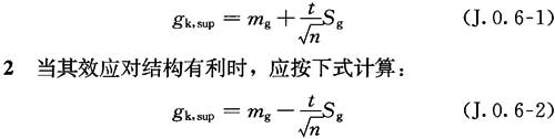 J.0.6 现场抽样检测材料或构件自重的试样,不应少于5个。当按检测的结果确定材料或构件自重的标准值时,应按下列规定进行计算: