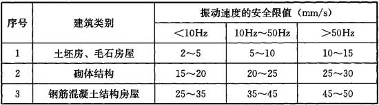 注:1 表列频率为主振频率,振动速度为质点振动相互垂直的三个分量的最大值;