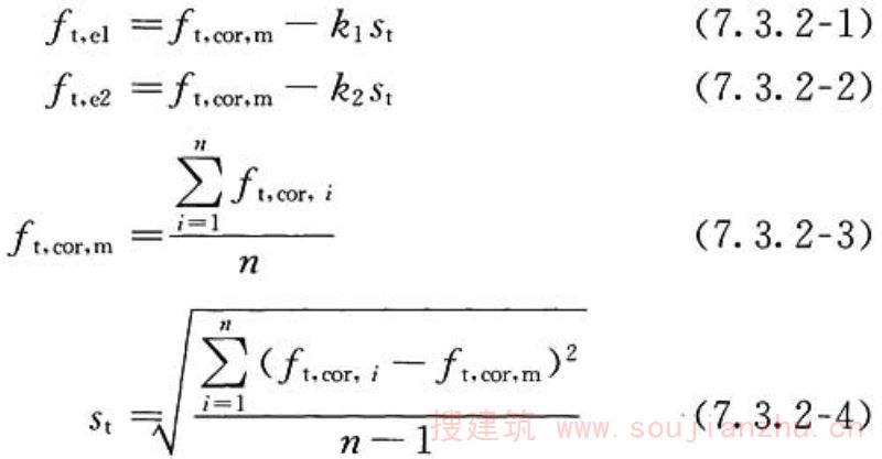 7.3.2 检测批混凝土劈裂抗拉强度的推定值应按下列方法确定: