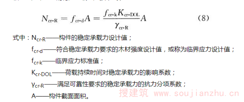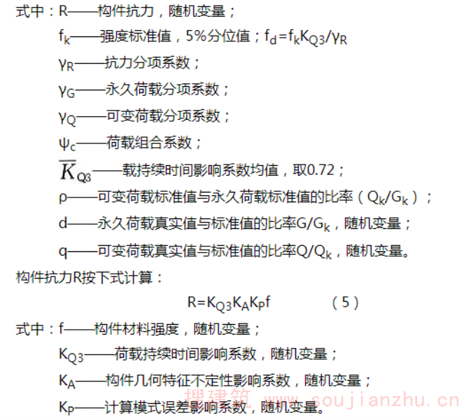 3 由于本标准未考虑木材在临时性工程和工具结构中的应用问题,因此,本标准不适用于临时性建筑设施以及施工用支架、模板和把杆等工具结构的设计。 本标准依据现行国家标准《工程结构可靠性设计统一标准》GB 50153及《建筑结构可靠性设计统一标准》GB 50068的原则制定。由于《建筑结构可靠性设计统一标准》GB 50068(以下简称《统一标准》)对建筑结构设计的基本原则(结构可靠度和极限状态设计原则)作出了统一规定,并明确要求各类材料结构的设计规范必须予以遵守。因此,本标准以《统一标准》为依据,对木结构的设计原则作出相应的具体规定。