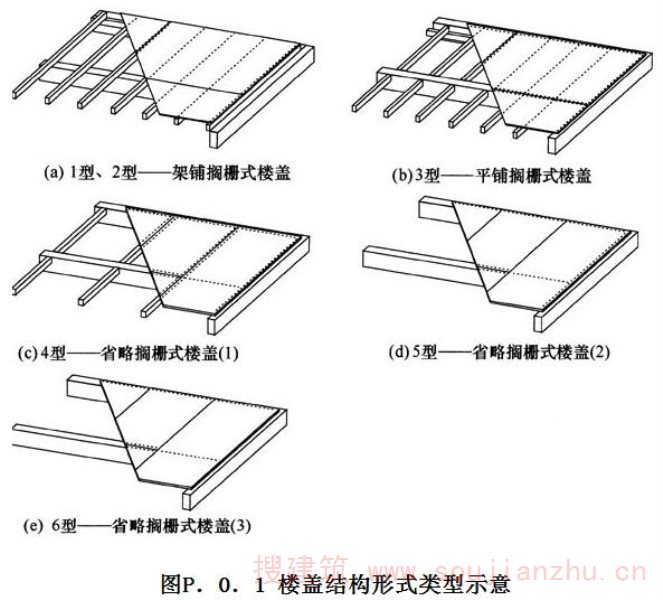 P.0.1 采用木基结构板材的木框架剪力墙结构楼盖抗剪强度设计值应根据楼盖的构造类型(图P.0.1), 按表P.0.1 的规定取值。