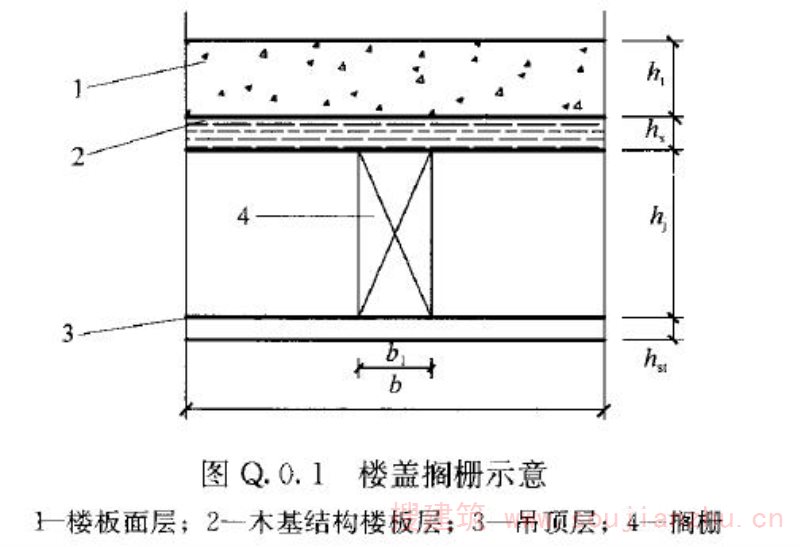 Q.0.1 当楼盖搁栅(图Q.0.1)由振动控制时,搁栅的跨度l 应按下列公式验算: