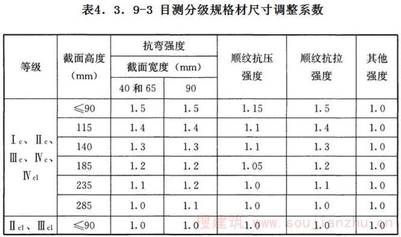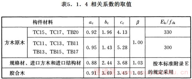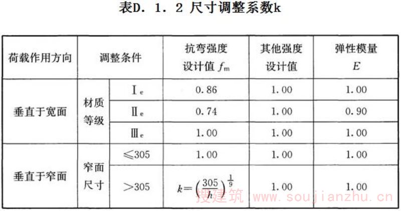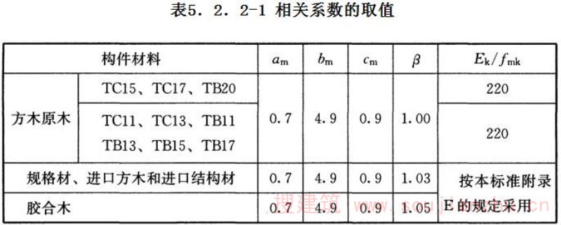 4 对含水率小于或等于15%的规格材,k s 应为1.40, 对含水率大于15%且小于19%的规格材, k s 应为1.75。