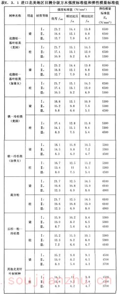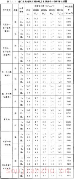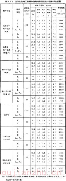 2 对进口木材及木材产品的强度设计值进行了可靠度分析研究,确定了在本标准中的强度设计指标;