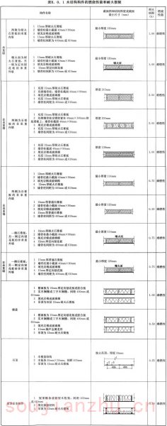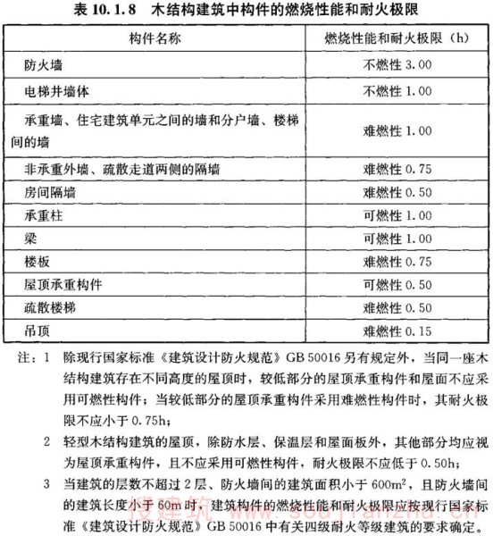 R.0.1 木结构构件的燃烧性能和耐火极限应符合表R.0.1的规定。