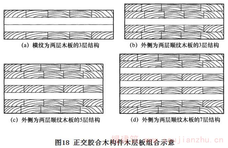 2.1.7 结构复合木材是现代木结构经常采用的结构材料之一,它包括旋切板胶合木(单板层积材,LVL——Laminated Veneer Lumber)、平行木片胶合木 (单板条层积材,PSL——Parallel Strand Lumber)、层叠木片胶合木(定向木片层积材,LSL-—Laminated Strand Lumber)和定向木片胶合木(OSL——Oriented Strand Lumber),以及其他具有类似特征的复合木产品。随着木材加工业的发展,将出现更多新的结构复合木产品。