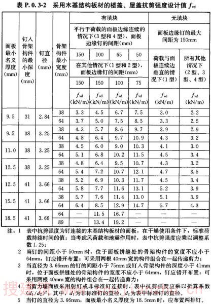 附录P 木基结构板的楼盖、屋盖抗剪强度设计值