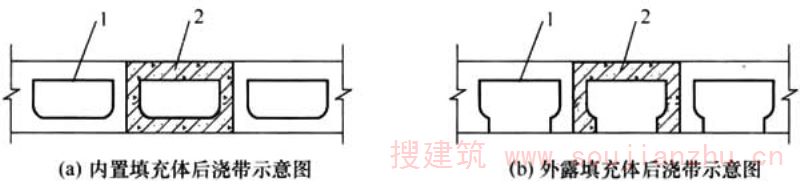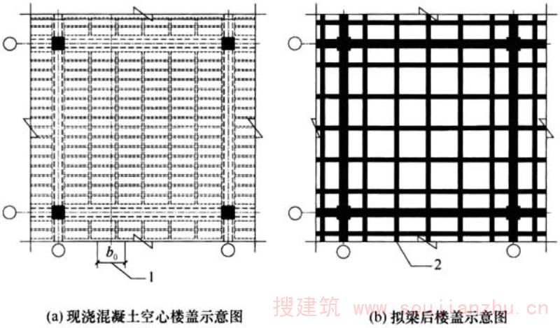 2.1.2现浇混凝土空心楼盖的填充体空心部分不参与结构受力。现浇混凝土空心楼盖包括了混凝土空心楼板和梁(暗梁)等水平支承构件。