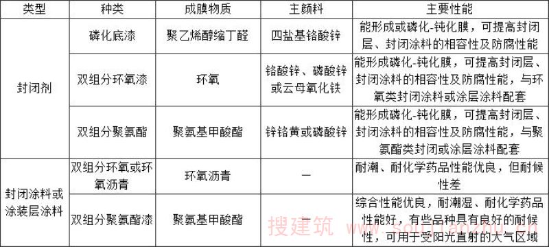 表C 常用封闭剂、封闭涂料和涂装层涂料