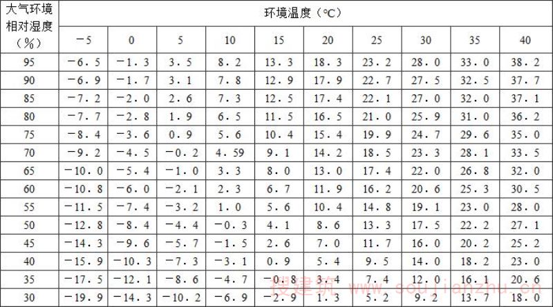 附录D 露点换算表