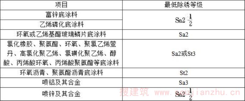 级。当不具备喷砂条件时,可采用动力或手工除锈,其除锈等级应达到St3级。