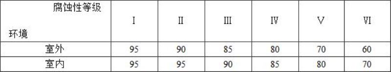 表3.1.2 大气环境对建筑钢结构长期作用下的腐蚀性等级