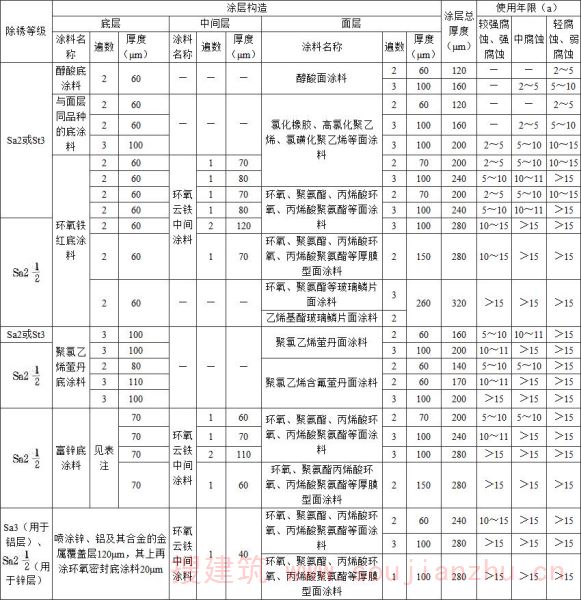 注:1 涂层厚度系指干膜的厚度;