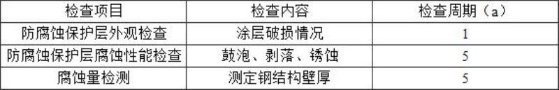 7.0.2 建筑钢结构的腐蚀与防腐蚀检查可分为定期检查和特殊检查。定期检查的项目、内容和周期应符合表7.0.2的规定。
