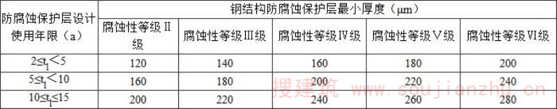 3.1.1 建筑钢结构应根据环境条件、材质、结构形式、使用要求、施工条件和维护管理条件等进行防腐蚀设计。