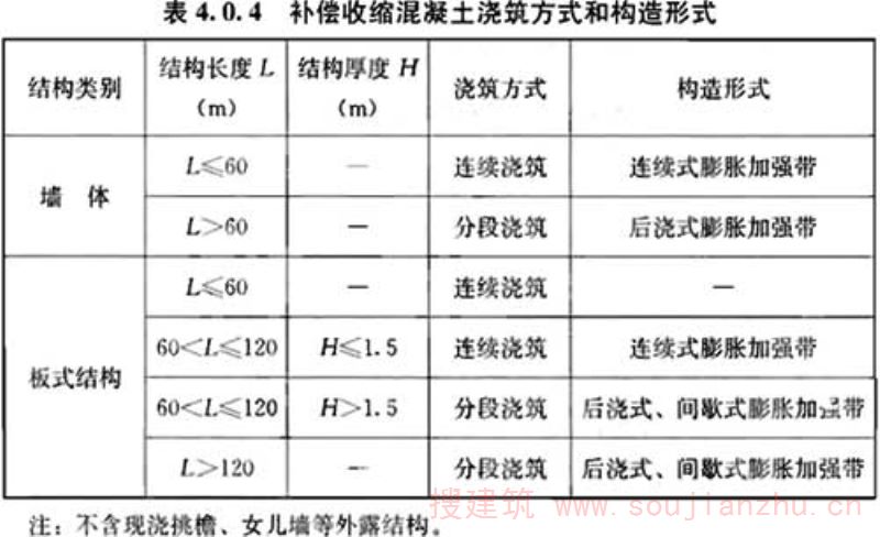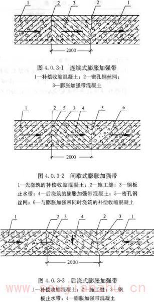4.0.3 大体积、大面积及超长混凝土结构的后浇带可采用膨胀加强带的措施,并应符合下列规定: