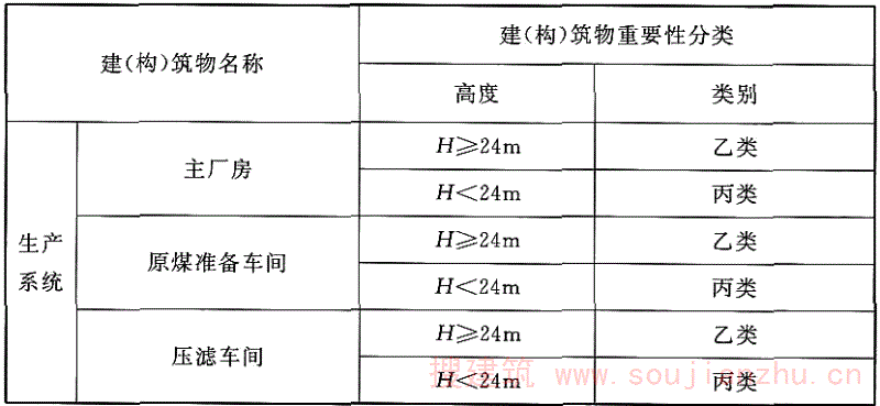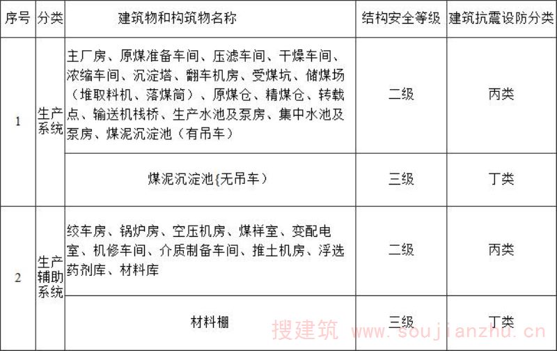表1.0.4 选煤厂建筑物和构筑物的结构安全等级和建筑抗震设防分类
