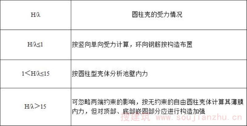注:表中H为圆柱壳池壁高度,λ为圆柱壳的弹性特征系数,