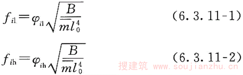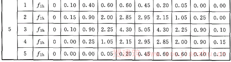 φ i1 、φ ih ——对于钢筋混凝土结构第i频率密集区的自振频率系数;