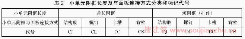 4.1.2 按小单元附框长度及与面板连接方式分类和标记代号见表2,分类示意图见附录A。