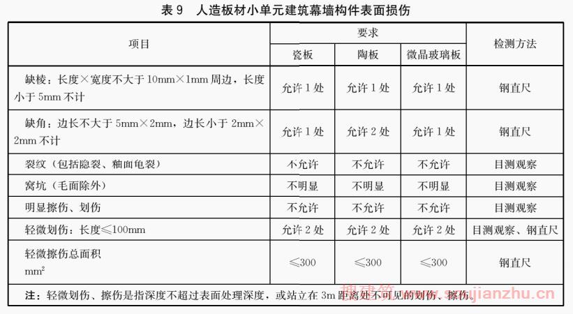 a)适用范围中增加了瓷板、陶板、微晶玻璃板三种人造板材,并在相应章节中补充了对应内容(见第1章、5.3.4、6.1.4、6.2.4、6.3.4、7.2.4、7.3.4、8.2);