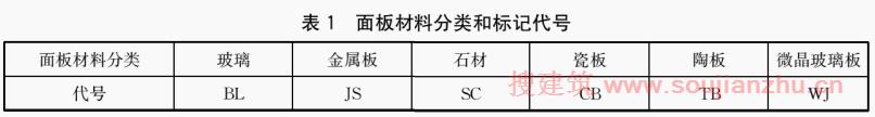 4.1.1 按面板材料分类和标记代号见表1,分类示意图见附录A。