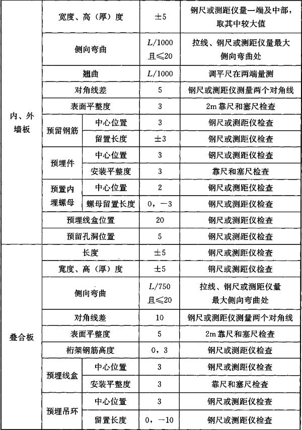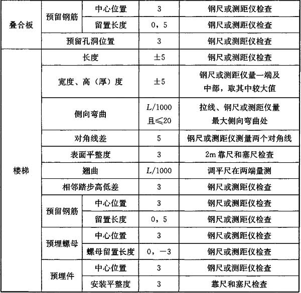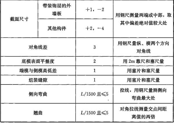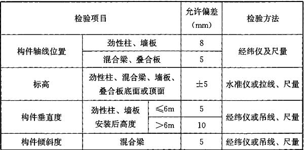 表8.3.10 预制构件安装允许偏差及检验方法