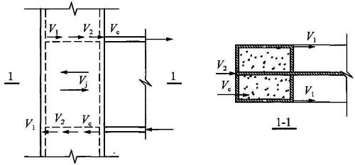 f v1 ——劲性柱钢管腹板的抗剪强度设计值;