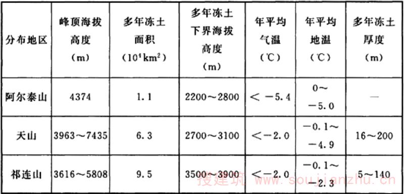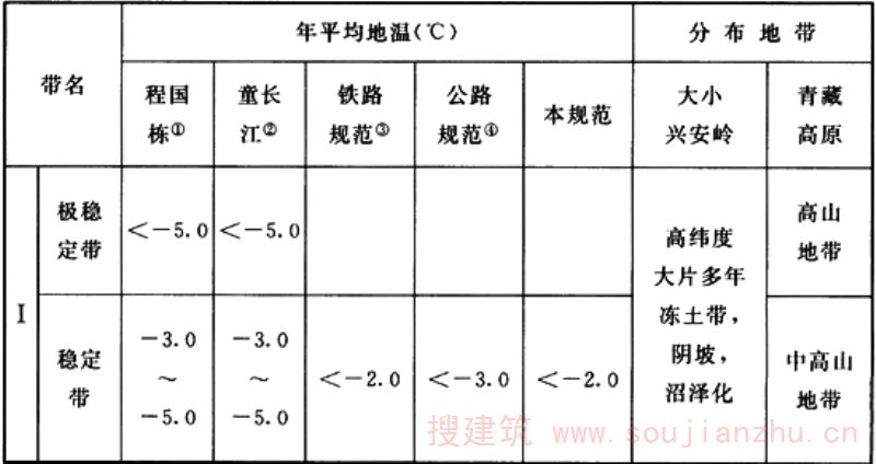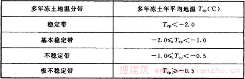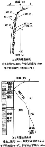 1 多年冻土的年平均地温值;