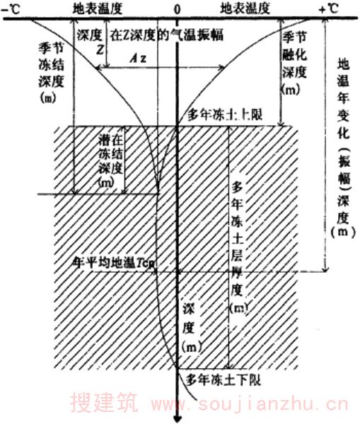 1 多年冻土上限处地温的年振幅应等于年平均地温的绝对值;