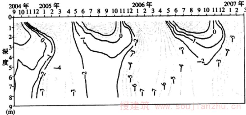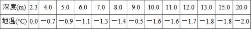 故自地面起算的地温年变化深度为:10.1+2.3=12.4(m)。 (4)计算多年冻土年平均地温: