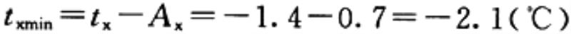 (5)计算上限以下任意深度(自地面起算)hx处地温的年平均值tx、最高值txmax、最低值txmin。 设:hx=5m, 1)5m深度处的地温年振幅: