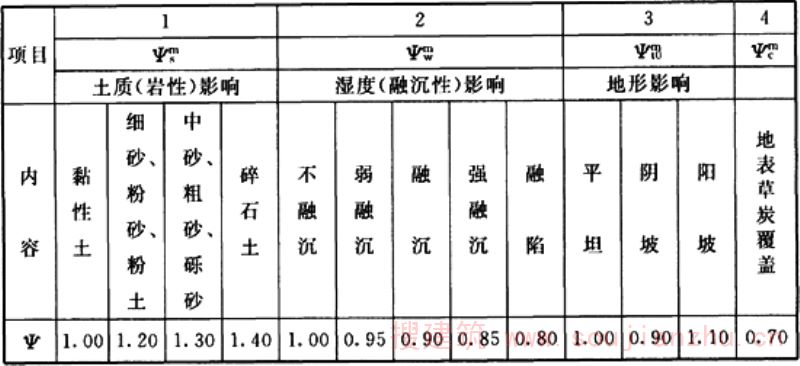 α——多年冻土导温系数的平均值,m 2 /h;根据多年冻土的岩性成分、物理性质,按本规范附录C查得,经加权平均计算确定;