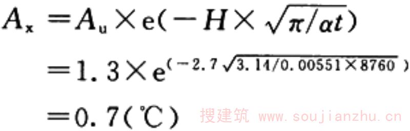 式中:A x ——基础底面埋深(自上限起算)H(H=h x —h z )处地温的年振幅(℃)。