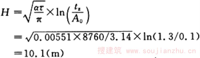 (3)计算自上限起算的地温年变化深度H。